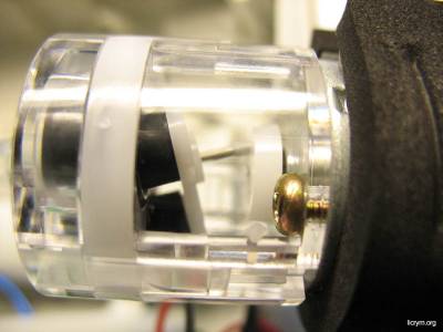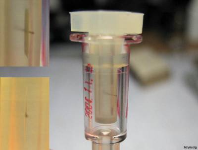 Для того что бы обеспечить приемлемую величину дросселирования потока нужно сделать маленькое отверстие. Технологическое оборудование для создания ровных малых отверстий довольно сложно и дорого, поэтому производитель решил проблему просто и изящно. Трубочка кончается пробкой из силикона. В пробке сделана прорезь, а что бы прорезь не закрывалась,в нее вставлен кусочек тоненькой проволоки. На фотографии слева проволочка показана с двух ракурсов.