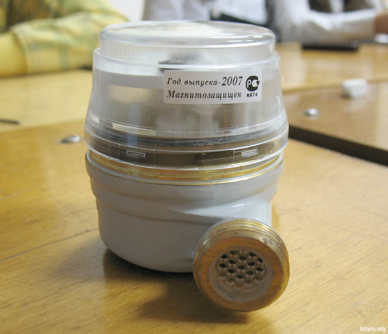2) В связи с тем, что используется магнитная связь между крыльчаткой в мокрой камере и счетным механизмом в сухой счетчик становится чувствительным к магнитным полям. Если сила сцепления магнита счетного механизма с внешним магнитным полем будет больше силы сцепления с магнитом крыльчатки то счетчик остановится. Для борьбы с таким родом махинаций вводят магнитное экранирование