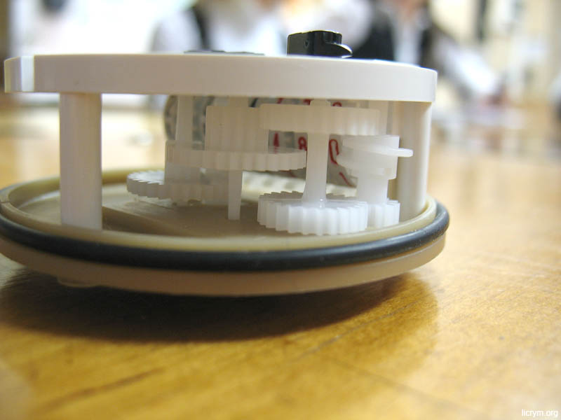 Основным элементом счетчика является крыльчатка. Во время протекания воды крыльчатка вращается потоком. На крыльчатке закреплен магнит, который связан магнитным полем с ответным магнитом, который синхронно вращается за пластиковой перегородкой в сухой части водосчетчика. Вращение ответного магнита через систему шестерен преобразуется в показания индикатора.